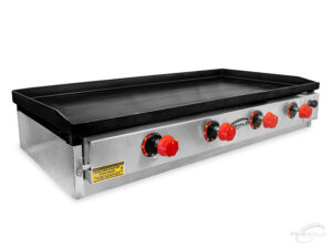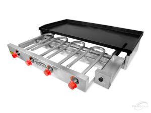 Nas cozinhas industriais em que a quantidade de produtos versus o tempo de preparo deve ser muito acelerado, o uso de uma chapa de qualidade faz toda a diferença, e nossa chapa profissional 500×1000 é ideal para você. A Chapa tem sua estrutura confeccionada toda em aço Inox 430 escovado, possui sua chapa superior para frituras em aço carbono com espessura de 5mm, indicada para o uso profissional e comercial. Possui 04 (quatro) queimadores distribuídos de forma uniforme para melhor aquecimento da chapa. O sistema de acendimento é manual com gaveta, gerando maior segurança para o consumidor. Conta com uma gaveta coletora removível de resíduos, facilitando a higienização do produto, com um ajustador de temperatura, possuindo 5 posições de intensidade das chamas. Sua chapa possui 5mm de espessura, não deixando dissipar muito calor conforme o tempo de uso.