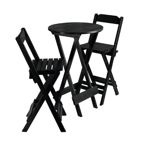 Transforme seu ambiente com o charme moderno e a elegância deste conjunto bistrô preto. Composto por uma mesa redonda e duas cadeiras dobráveis, ele é perfeito para varandas, áreas gourmet, cozinhas compactas, bares ou cantinhos de descanso com muito estilo.
